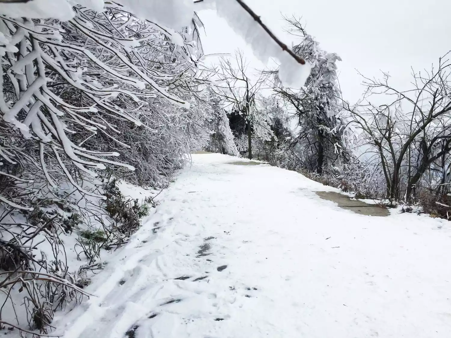 When the green leaves of the trees are covered with white snow, Mangshan is covered in white, which is breathtaking.