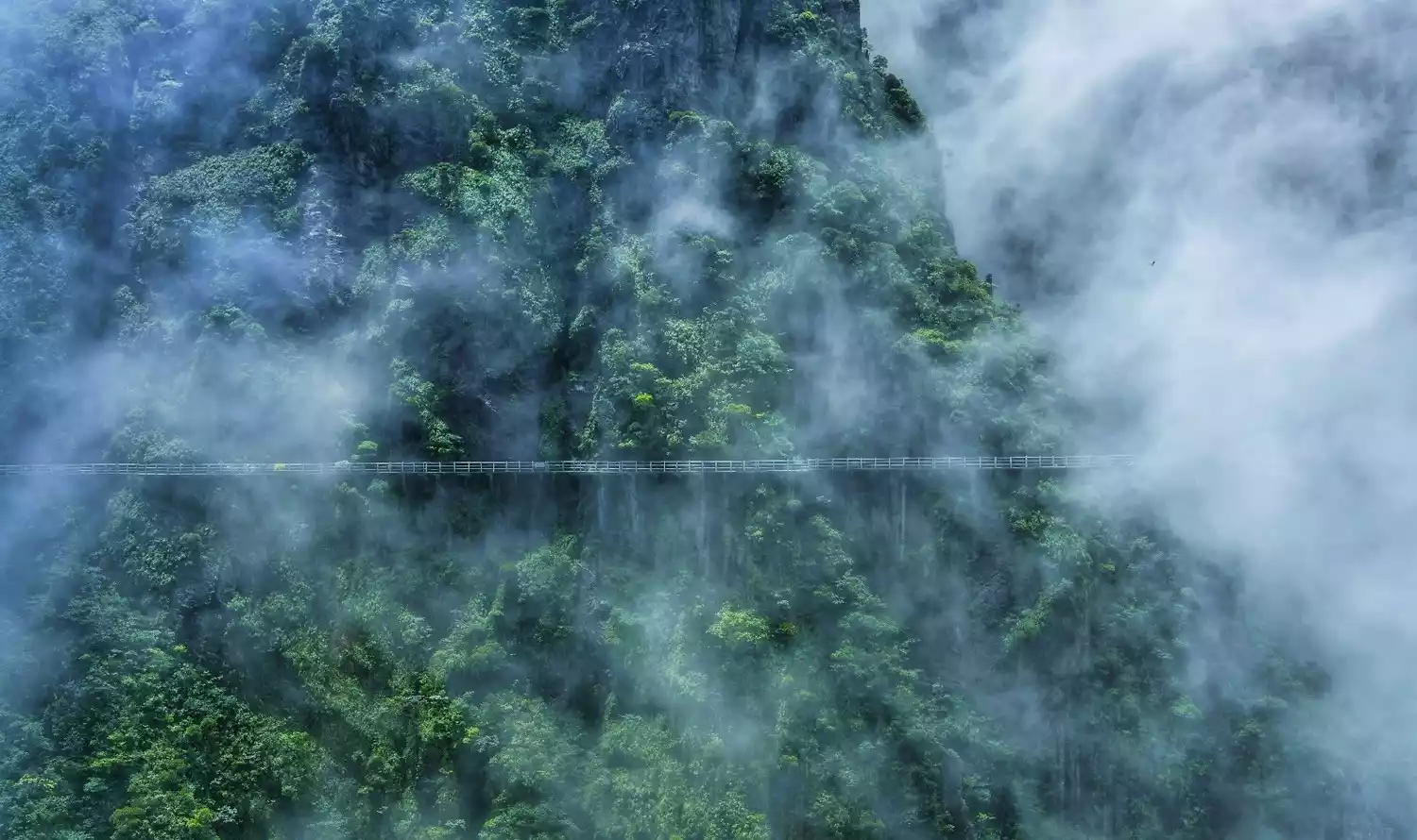It is the Mangshan National Forest Park, which is shrouded in clouds and mist all year round.
