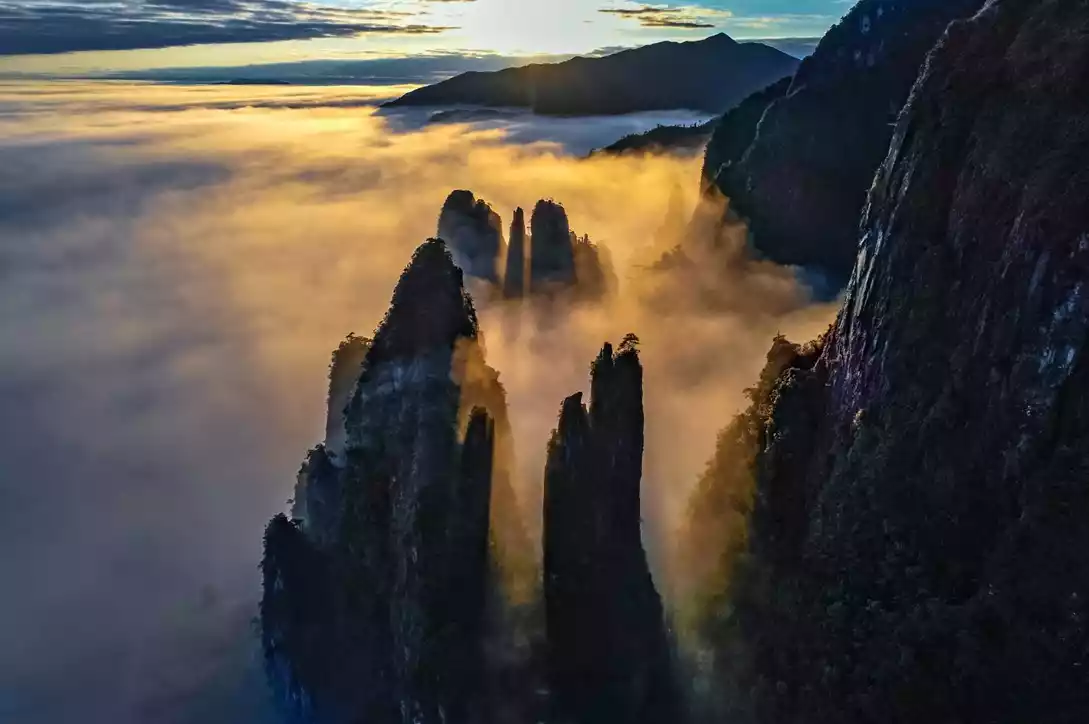 Hundreds of square kilometers of clouds gather into a sea of clouds, like the spirits of Wugong Mountain. With them, Wugong Mountain is full of spiritual energy, vitality and mystery.