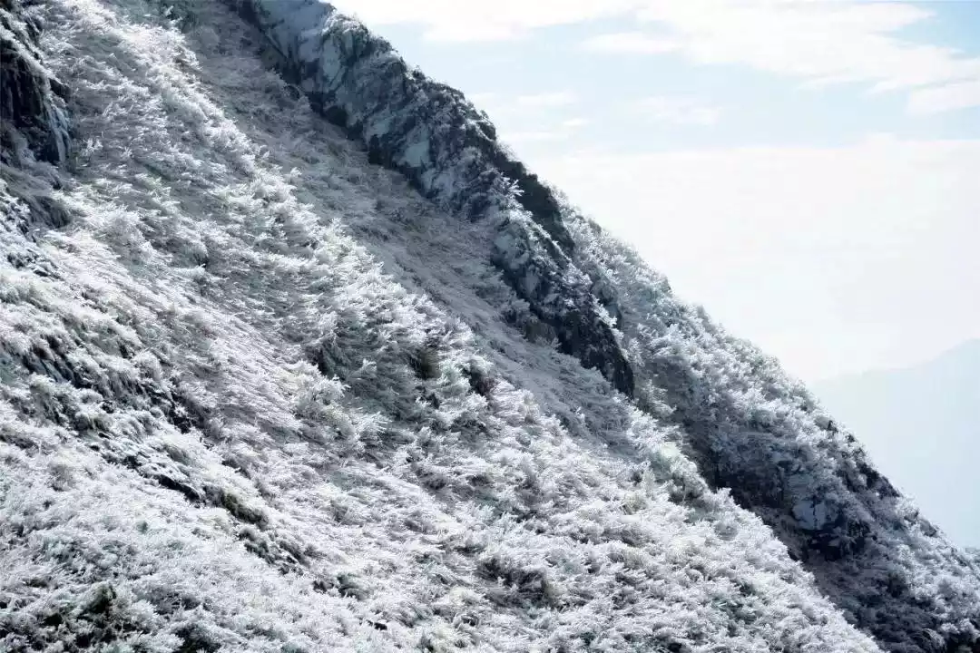 The icicles on Jinzi Mountain are the spirits of winter, making the cold southern winter less monotonous. The entire mountain is covered in snow, creating a magical and pure ice and rime landscape!
