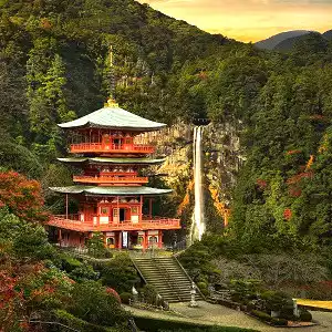 The Kumano Kodo is the collective name for the pilgrimage routes used by ancient Japanese royalty, nobles, and the general public to reach the Kumano Three Mountains: Kumano Hongu Taisha, Kumano Hayatama Taisha, and Kumano Nachi Taisha. These five trails stretch through Wakayama, Mie, and Nara prefectures in the southern part of the Kii Peninsula on Honshu, Japan, weaving through towering mountains, lush forests, and rural villages.