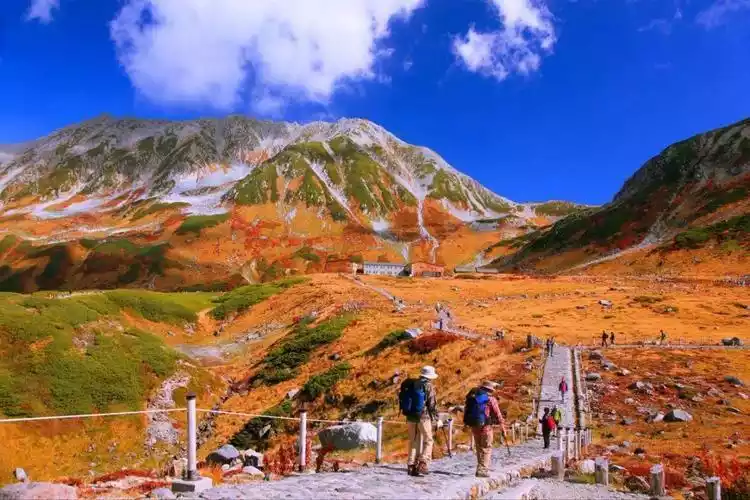 The Tateyama Kurobe Route is a classic descent of the Northern Alps, offering unique scenery throughout the year. Summer and autumn are the best seasons for hiking, with the mountains in bloom and autumn leaves resembling a painting. The Murodo and Daikanbo scenery from September to October is a must-see in the Northern Alps.