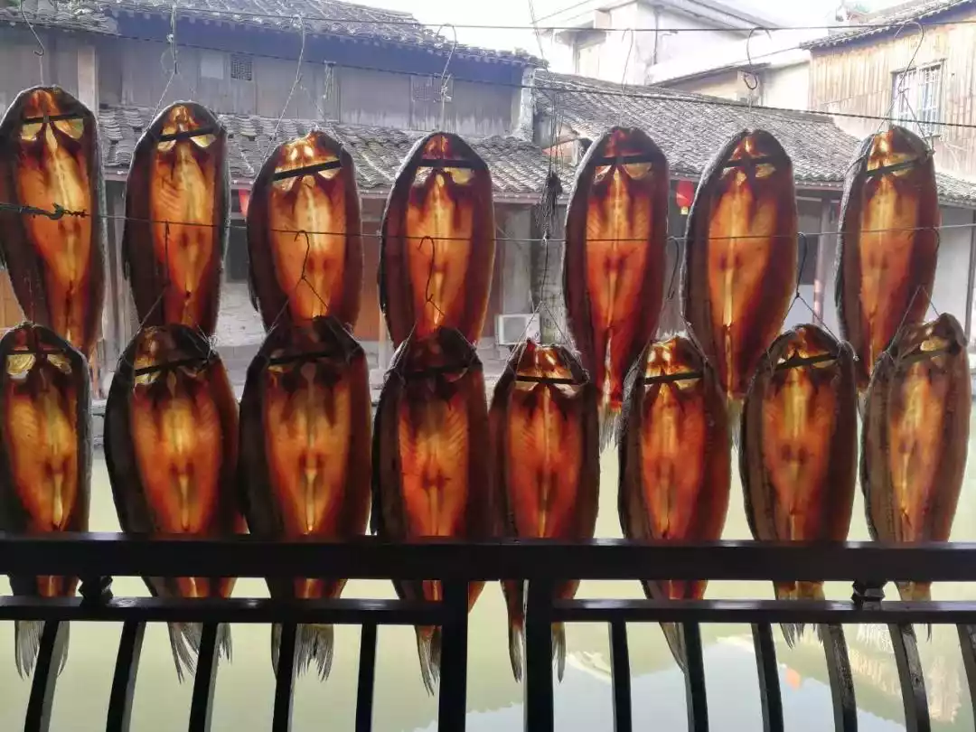 Anchang Old Street stretches 1.9 kilometers along the river, with residential houses on one side and the market on the other, connected by small bridges. The street is paved entirely with Shaoxing bluestone slabs. It's most famous for its New Year's goods, showcasing the rich, millennia-old Jiangnan folk customs. Dried fish, preserved sausages, braised pork, and braised duck are all exceptional Shaoxing specialties. The twelfth lunar month, a term now found only in Lu Xun's novels, has also been perfectly preserved in Anchang.
