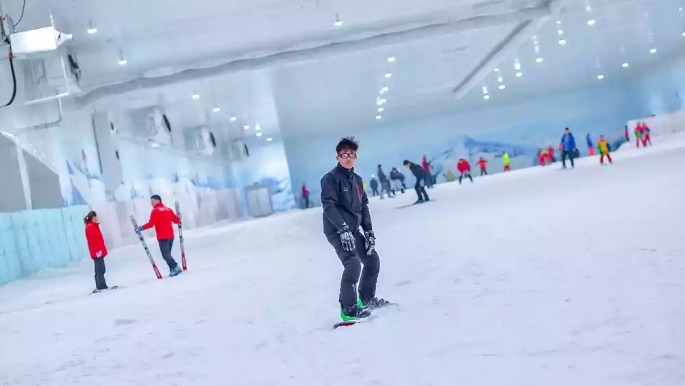 Qiao Bo Indoor Ski Hall has a construction area of nearly 40,000 square meters and a daily reception capacity of 3,000 people. The ski hall has four facilities including a children's snow play park, a snowboard park, a beginner ski slope, and an intermediate and advanced ski slope to meet the different needs of snowboard and double-board enthusiasts.