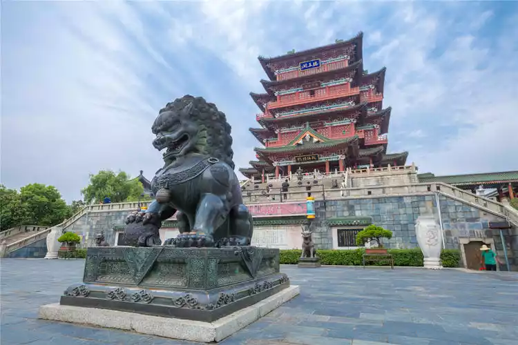 Tengwang Pavilion, located at the confluence of the Ganjiang River and the old course of the Fuhe River on Yanjiang Road in Nanchang, Jiangxi Province, is one of the three famous towers of Jiangnan, along with the Yellow Crane Tower and Yueyang Tower. In 1991, it was nominated for one of China's "Top 40 Tourist Attractions" by the National Tourism Administration. In January 2001, it was awarded the title of "National AAAA-level Tourist Area" by the National Tourism Administration. In 2004, it was approved by the State Council as a National Key Scenic Spot. The rebuilt Tengwang Pavilion has become a major tourist attraction in Nanchang and Jiangxi Province. As one of the "Three Famous Towers of Jiangnan," Tengwang Pavilion was destroyed and rebuilt a total of 28 times. The newly completed Tengwang Pavilion is even more majestic than its predecessor, over 1,300 years ago, embodying the imposing grandeur of "soaring pavilions, flowing red, and towering over the ground." The "Ma Dang Shen" luxury yacht was built for tourists to cruise the Ganjiang River. The Tengwang Pavilion Hotel, VIP banquet hall, antique performance hall, and celebrity calligraphy and painting hall have also been constructed. Climbing the tower offers panoramic views of Nanchang. The immense fame of the Pavilion of Prince Teng is largely due to the popular prose piece "Preface to the Pavilion of Prince Teng." Legend has it that the poet Wang Bo, visiting relatives in Nanchang, happened upon the occasion when Governor Yan was hosting a banquet at the Pavilion after its renovations. Wang Bo improvised the poem, "A Farewell Preface to the Pavilion of Prince Teng on an Autumn Day in Hongfu," which impressed the guests. Following Wang Bo's preface, Wang Zhongshu wrote a commentary and Wang Xu a fu, forming what is known in history as the "Three Wangs' Essays." From then on, the preface became famous for the pavilion, and the pavilion for its preface. Over the course of 1,300 years, the five pavilions of Teng underwent 28 cycles of construction and destruction, ultimately being burned down in 1926 by the forces of the Beiyang warlord Deng Ruzhuo.