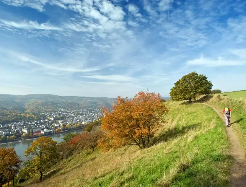 The Rhine Trail was jointly planned and established by the German states of Hesse, Rhineland-Palatinate, and North Rhine-Westphalia in 2005. With its dense network of trails, clear signage, and rich landscapes and cultural history, the Rhine Trail has been recognized as Germany's most beautiful hiking trail.