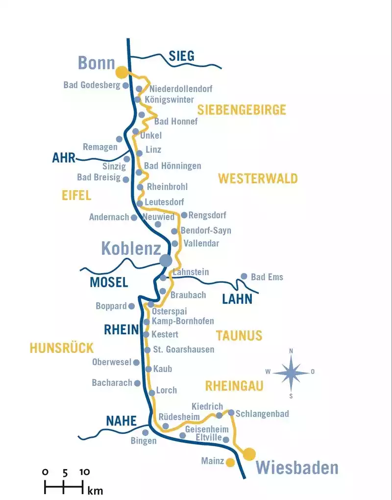 Location: Upper Rhine Valley, Germany, from Wiesbaden in Hesse to Bonn in North Rhine-Westphalia, along the right bank of the Rhine.