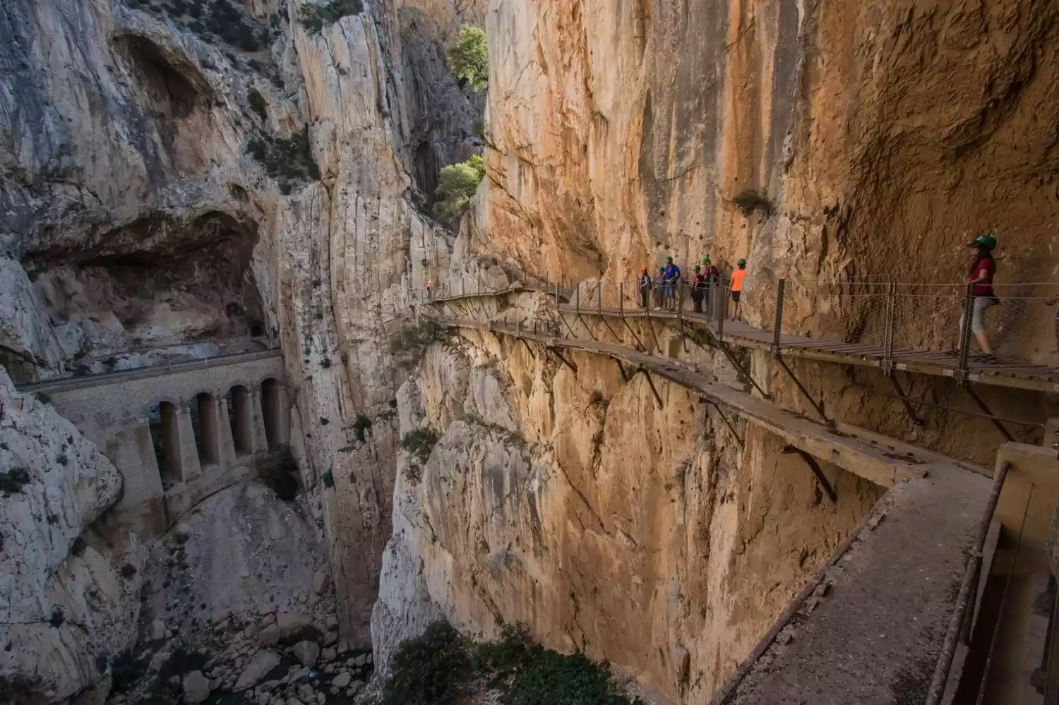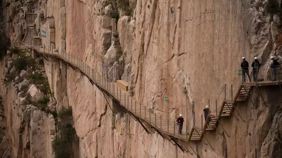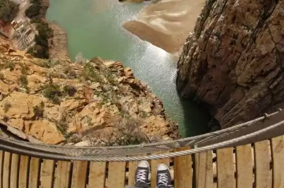 The El Chorro King's Trail is built on a cliff 100 meters high from the El Chorro River in the canyon. It is about 7.7 kilometers long, of which 3 kilometers are paved with wooden boards, about 1 meter wide and no more than 50 centimeters at the narrowest point. One side has towering cliffs, and the other side has a deep valley with fast-flowing water. Therefore, this trail is known as the "most thrilling plank road in the world."