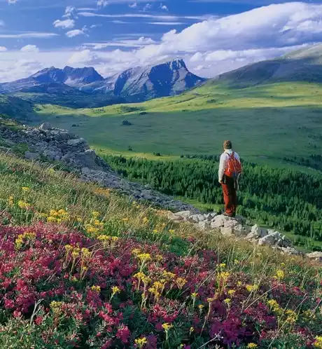 The hiking trail is roughly divided into three sections: Rock Island Lake, Grizzly-Larch Lake Road, and Grassland Park Road. The Grassland trail is narrow and only accessible to one person. Signs and markings are in place along the way, so be especially careful at forks in the trail.