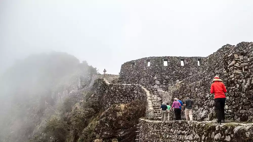 We will pass through the cloud forest covering the cliffs to reach the ruins of Puerta del Sol, in time to catch the sunrise over the mountain city of Machu Picchu. We will also be able to see the pyramid-shaped guardian peak of Huayna Picchu standing behind the square.