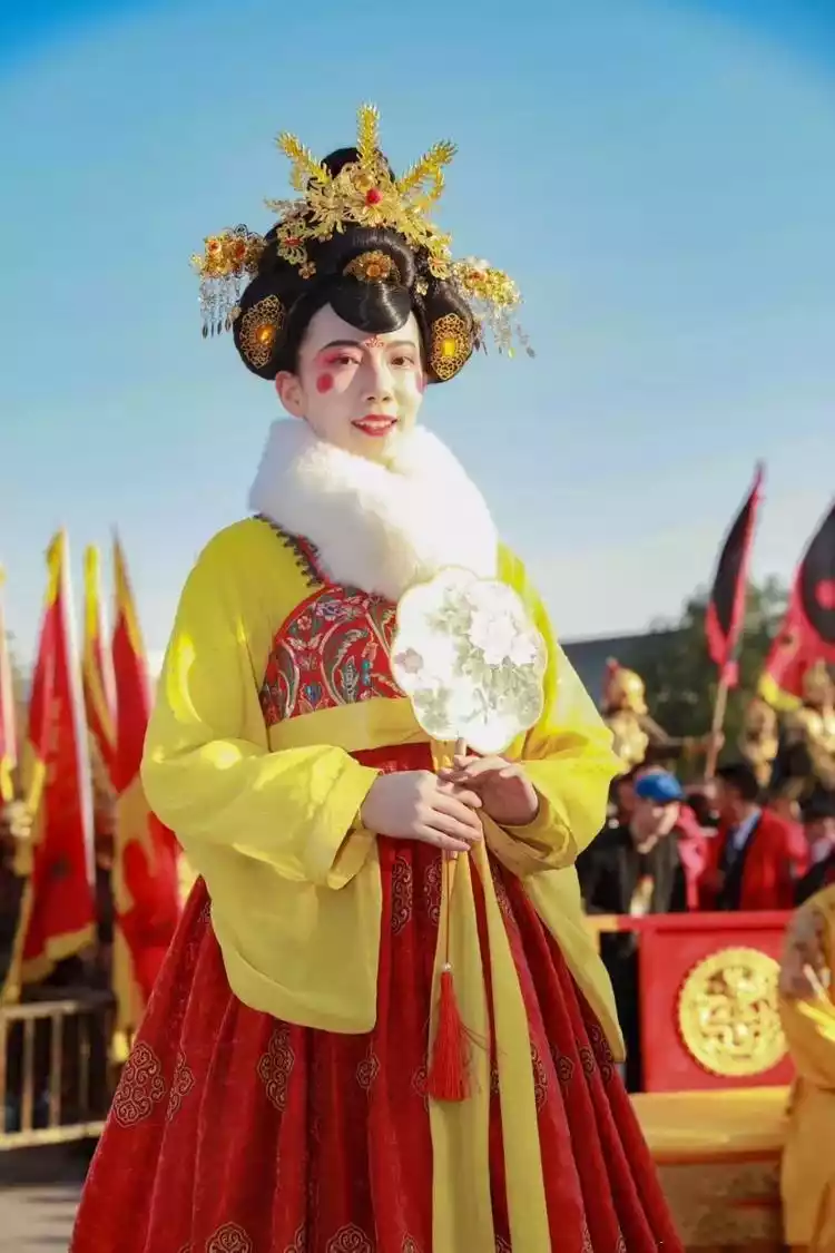 The goddess of the prosperous Tang Dynasty is dressed in a red dress, showing the grace and elegance of the Tang Dynasty concubine. Performance area: South side of the sculpture of Empress Wu