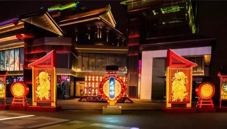 The central landscape belt between Big Wild Goose Pagoda and Kaiyuan Square is Suzaku Avenue, dividing Chang'an into east and west. This central belt is decorated with dazzling Tang Dynasty lanterns and other landscape installations, creating a lively and festive atmosphere and recreating the scene of a prosperous Tang Dynasty street.