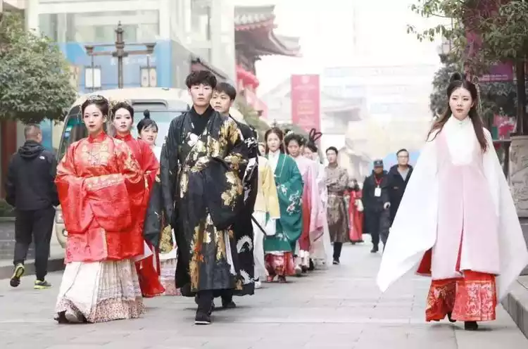 Amid the bustling crowd, girls in elaborate makeup and ornate costumes are stunningly beautiful and ethereal. Boys in long gowns, clutching folding fans, are graceful and upright. It's said that the "Hanfu craze" has fueled the "Han and Tang Renaissance," and if there's one city where Hanfu is most popular, it has to be Xi'an.