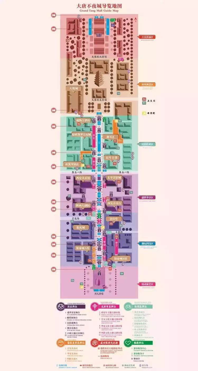 In the West Market, there is Fuxingfang, a street of delicious food and fine wine, Chonghuafang, which focuses on Western Region performances, and Guangdefang, which focuses on praying and experiencing ancient costume dramas.