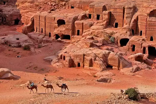At Petra, people built large tombs, colonnaded streets, altars, temples, and tall facades amidst the rose-red valley.