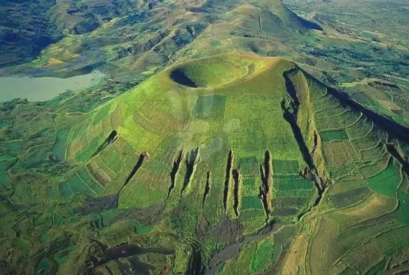 Erta Ale volcano is located 50 meters below sea level. The oval lava lake is the oldest of the six lava lakes in the world. After hiking to the top of the mountain, you can try to walk around the crater accompanied by splashing lava.
