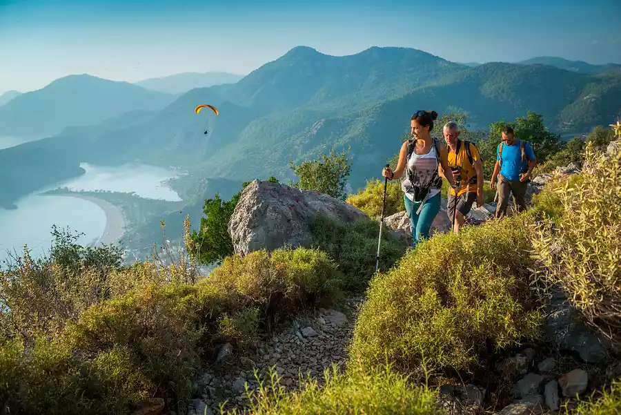 The Lycian Way stretches from Oludeniz to Antalya, often following the rugged azure coastline amidst carob, strawberry, and juniper trees. It also passes hidden historical sites, from Roman ruins to crumbling Byzantine monasteries, submerged cities, and Lycian tombs.