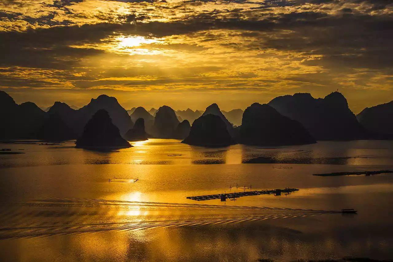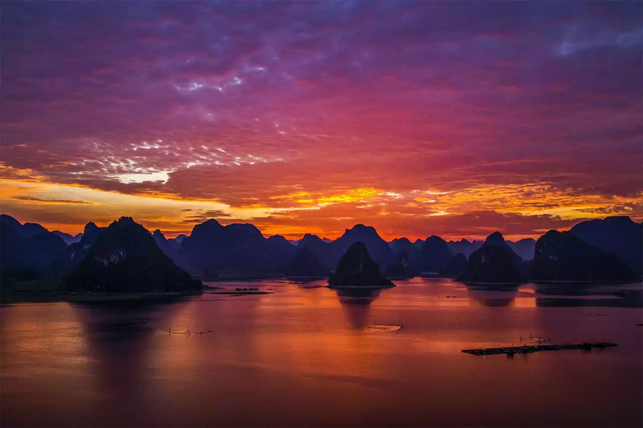Quyang Lake is known as the Guilin on the Water. It is similar to Vietnam's Halong Bay. It is actually a large karst plateau lake reservoir. There are more than a dozen peaks scattered in the lake. When the weather is good, you can take a cruise to appreciate the beautiful scenery here, which is breathtaking.
