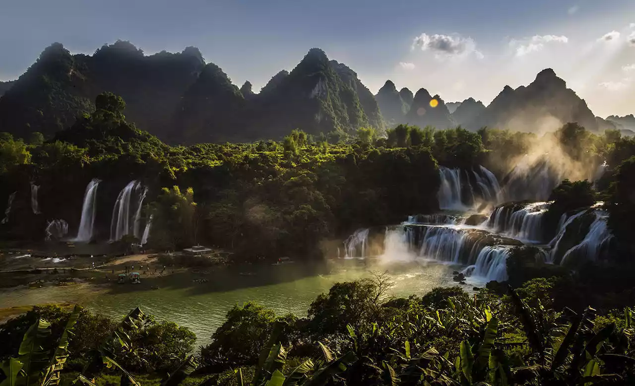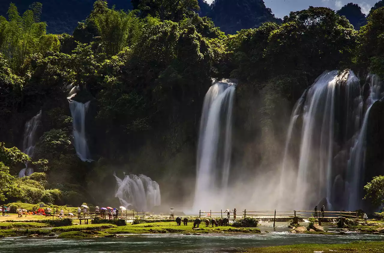 Without any documents, you can take a bamboo raft across the border to enjoy the beautiful Ban Gioc Waterfall in Vietnam up close and get up close to the thundering Detian Waterfall.