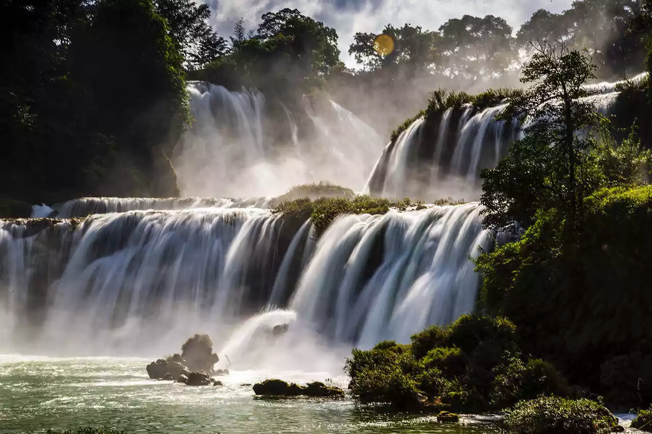 It spans China and Vietnam and is connected to Vietnam's Ban Gioc Waterfall. It is the largest transnational waterfall in Asia.