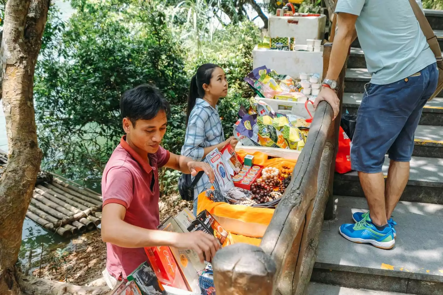 When you are marveling at the magnificent scenery on the observation deck, there may be Vietnamese vendors coming here by boat from the other side, speaking fluent Mandarin and selling cigarettes, coffee and other Vietnamese products to tourists.