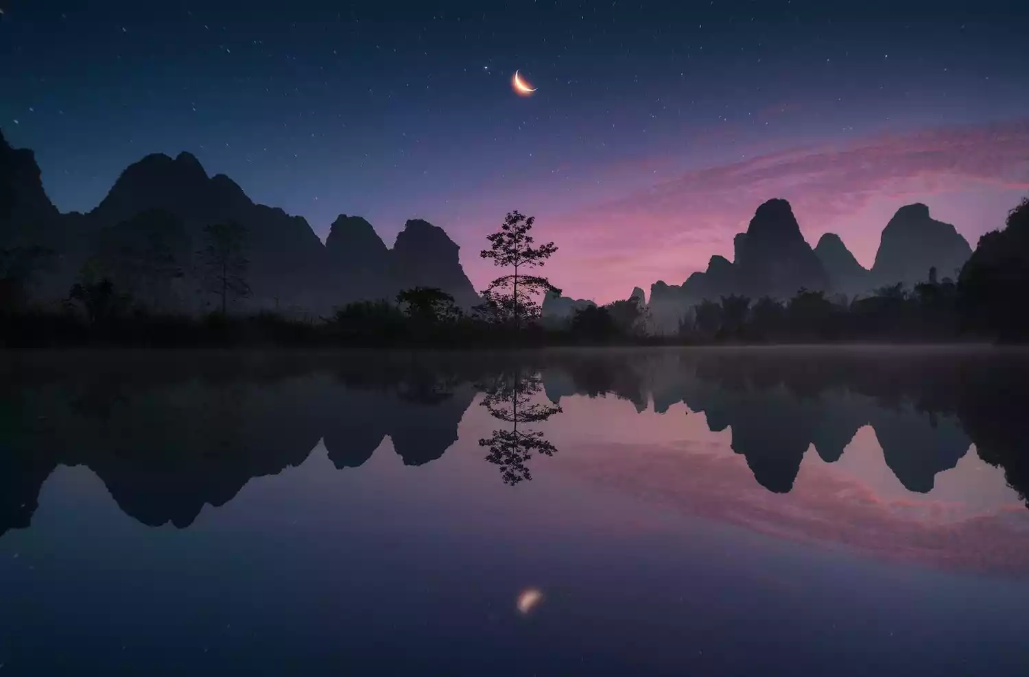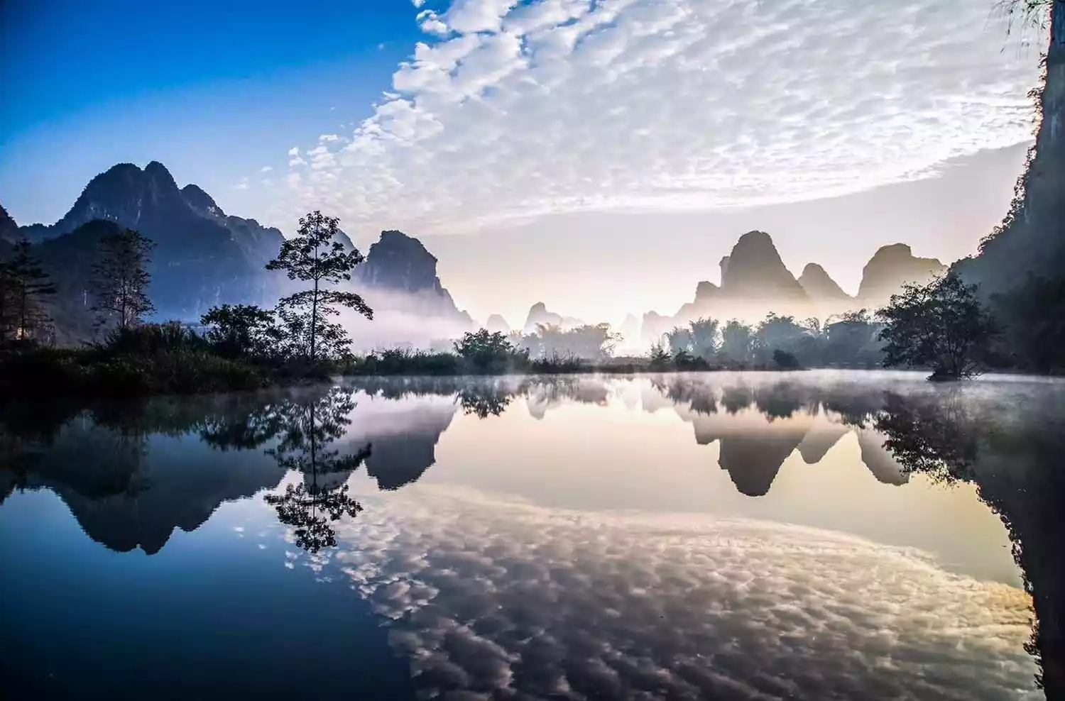 When the green mountains stand upside down in the water, they are like a hanging canvas. It is difficult to distinguish what is real and what is fake. They look different at every moment and are as beautiful as a carefully painted ink painting.