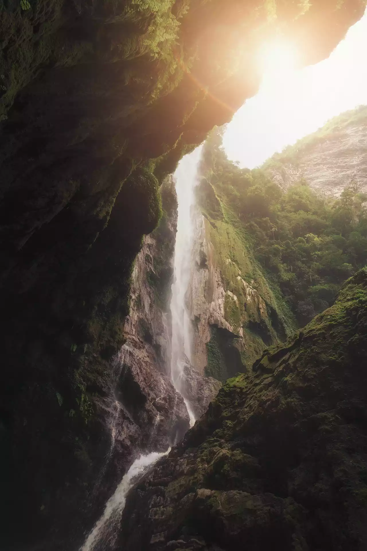Turning back from the path below the Tongling Treasure Cave, you can see a ray of sky above and a surging underground river below!