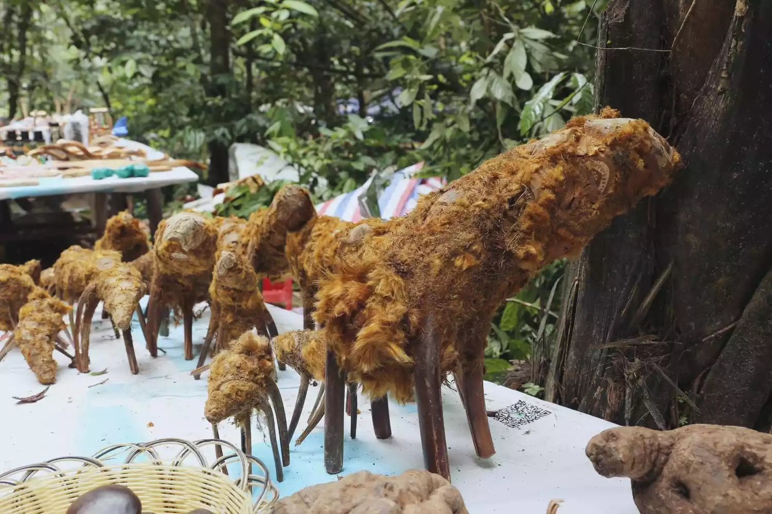 The vendors along the way were also quite interesting. Some wild herbs resembled the mountain elves that appear in Hayao Miyazaki's paintings, with roots resembling four legs, sneaking away when people weren't paying attention. After asking the locals, I learned that they were hemostatic herbs called golden dog.