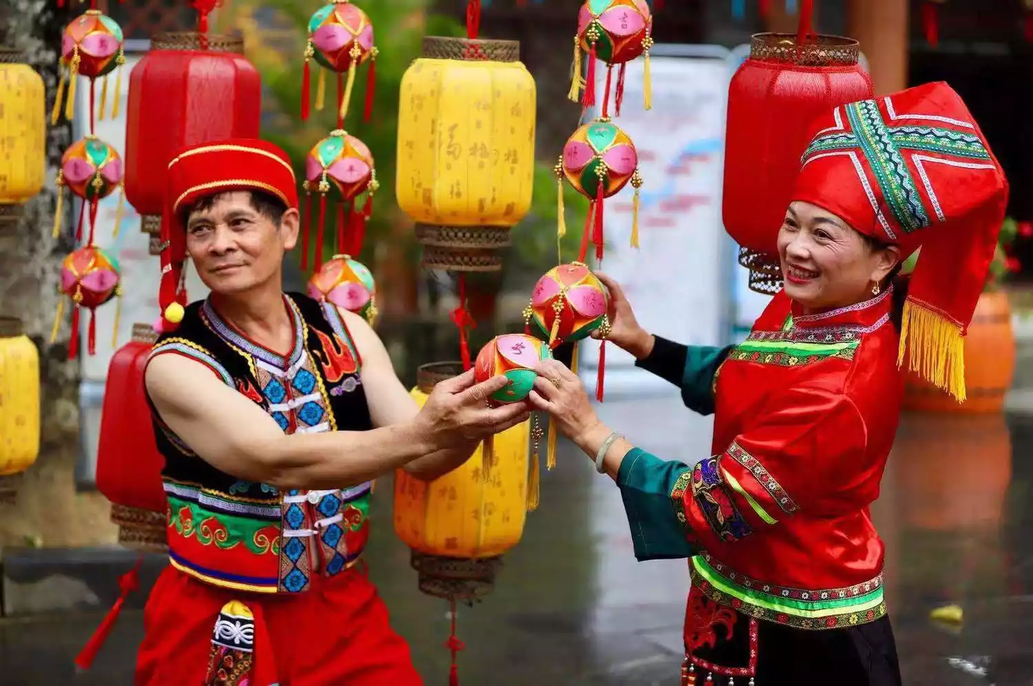 Every year on the third day of the third lunar month, men and women sing folk songs to each other. If a girl finds her ideal man, she will throw an embroidered ball to the other party as a token of love.