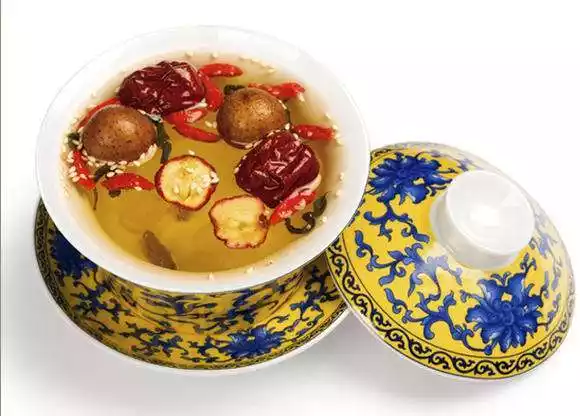 Generally, the tea prepared before meals is "Eight Treasures Tea." It uses tea as a base, with rock sugar, Ningxia wolfberries, red dates, walnut kernels, etc. It tastes sweet and delicious, nourishes the lungs, and clears the throat.