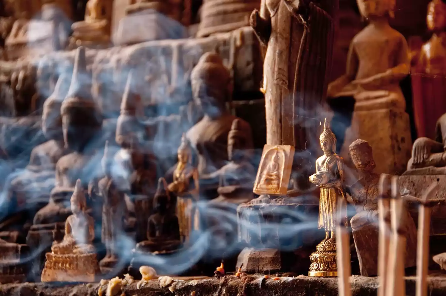 The Thousand Buddha Caves are divided into the upper cave, Tham Phoum, and the lower cave, Tham Ting. The two caves contain tens of thousands of Buddha statues, of which 8,000 are registered. The statues vary in size and shape.