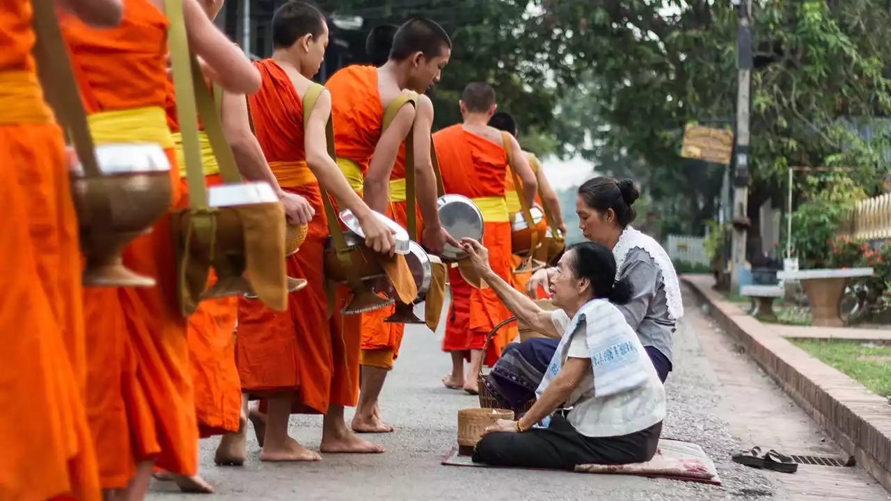 Almsgiving is a traditional custom that has been maintained by Theravada Buddhist monks for thousands of years. It has a long history and is very common in Theravada Buddhist countries in Southeast Asia. However, since the ancient city of Luang Prabang is a world heritage city with many concentrated temples, the almsgiving here is famous at home and abroad.