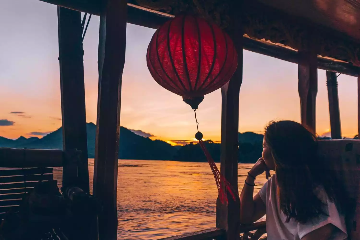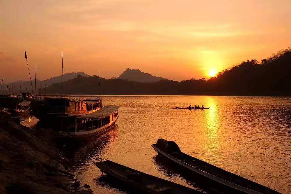 Drifting on the river, watching the water surface being painted with a layer of golden powder by the setting sun, and waiting for the sunset to fall, tired birds returning to their nests, and coconut trees and distant mountains becoming silhouettes, this is the romance of Laos.