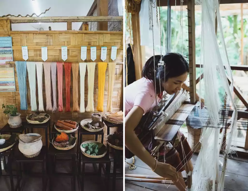 You can spend two hours or more here to experience traditional Laotian handicrafts, such as tie-dyeing, batik, bamboo weaving, silk weaving, etc.