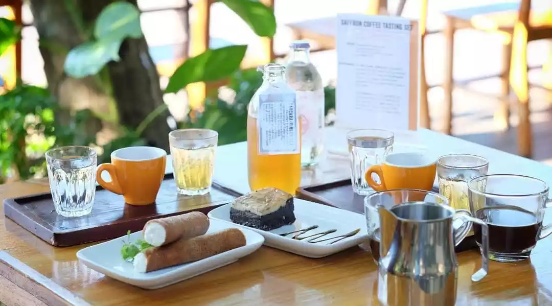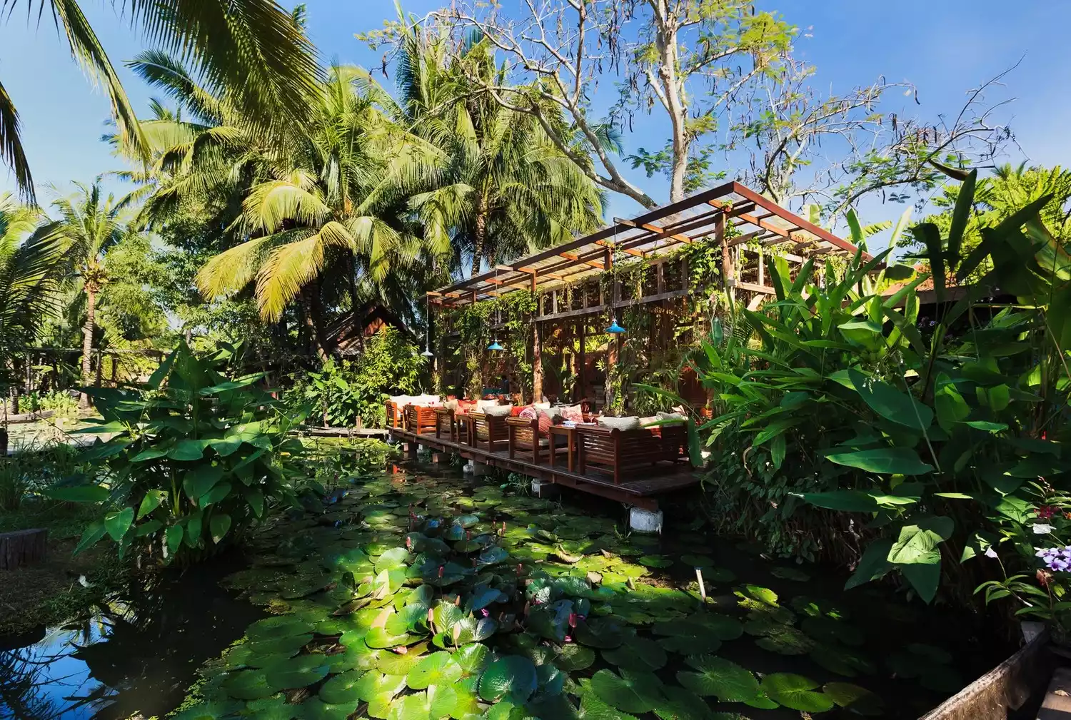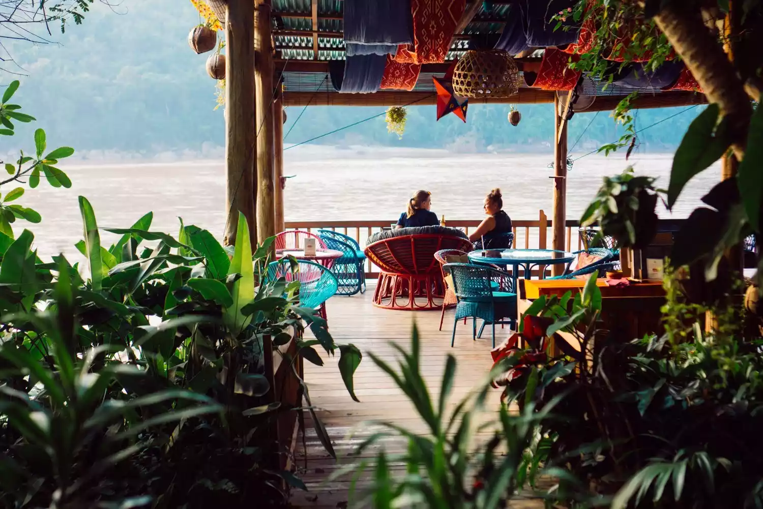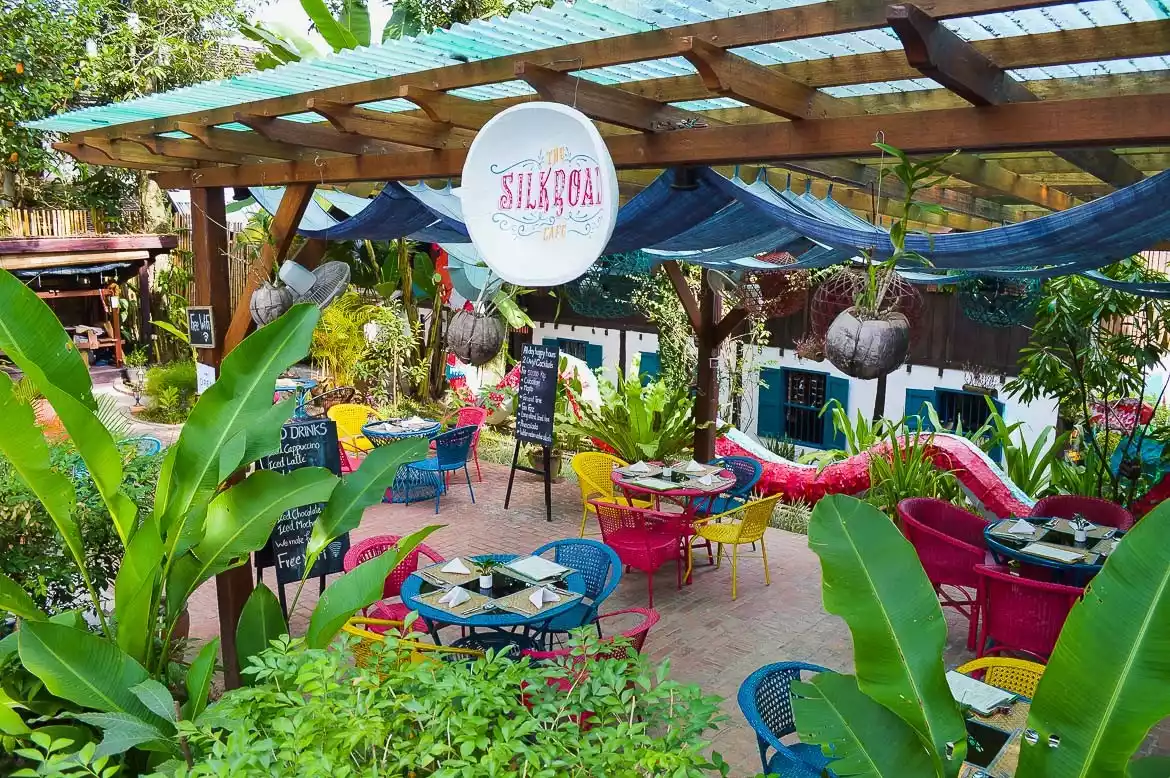 This oasis café, nestled within the aforementioned OCK POP TOK craft workshop, offers a picturesque view of the Mekong River. Besides coffee and desserts, the restaurant also serves Laotian-inspired meals.