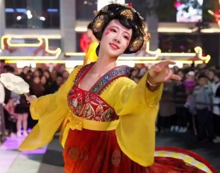 As night falls, there is a very beautiful light show here, and there are many street performers performing here every night, including folk instrument performances, clowns, resident singers, etc. The most famous of them is the "Doll Sister", who has Tang Dynasty makeup on her face and a red gauze skirt. She gently puts her hands on the hands of the audience (the girl only holds the hands of girls, boys only use fans), accompanied by the music of "Myth", as if pulling people back to the Tang Dynasty in an instant.