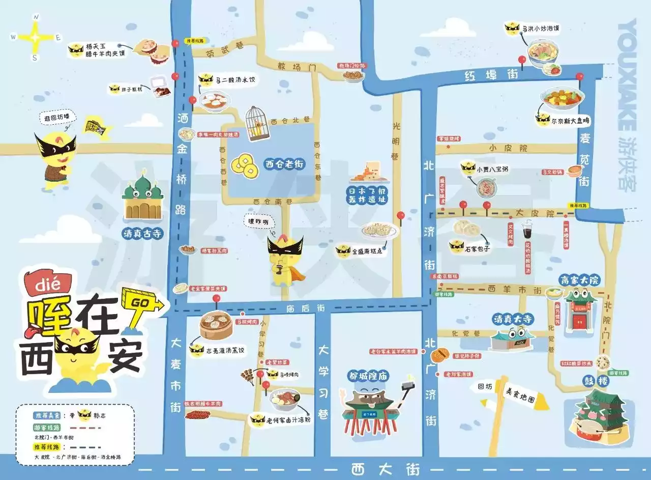 We recommend that you go to Huimin Street to experience the lively atmosphere. If you want to taste more authentic food or buy something more affordable, we suggest you go to places like Sajin Bridge, Qiaozikou, Daxuexiang, Guangji Street, and Dapiyuan.