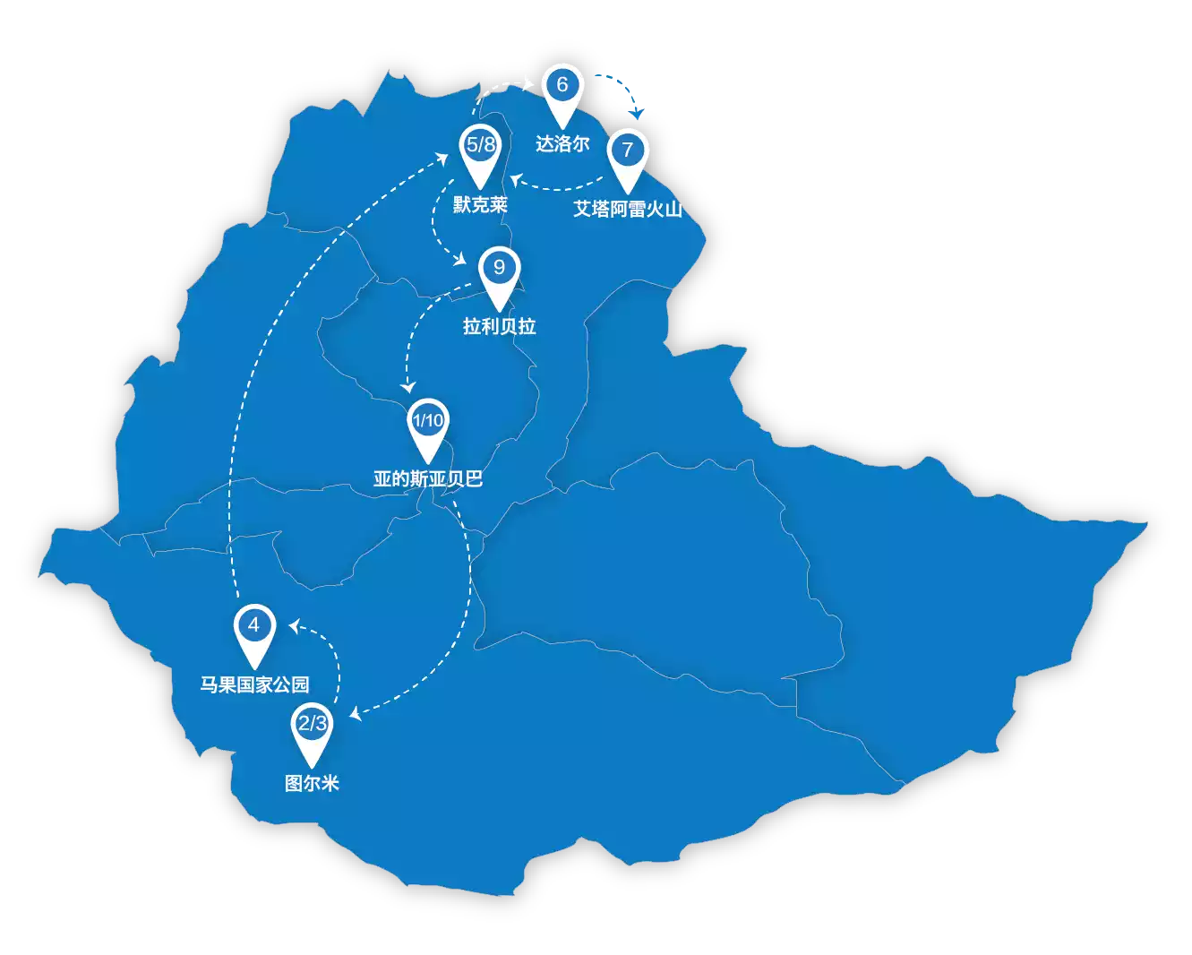 Ethiopia, the pearl of East Africa, is a place where primitiveness and civilization collide, and wildness and simplicity blend. It is the birthplace of coffee and is home to a Blue Nile River civilization spanning nearly a thousand years.