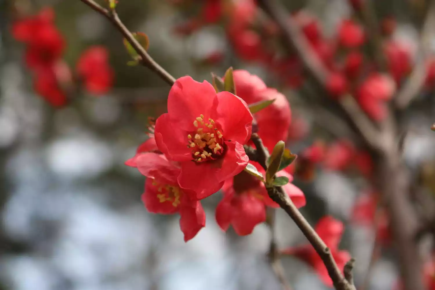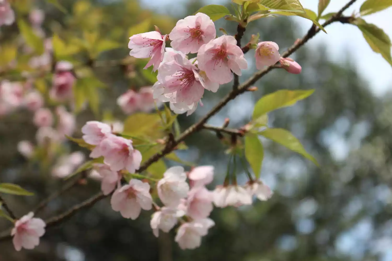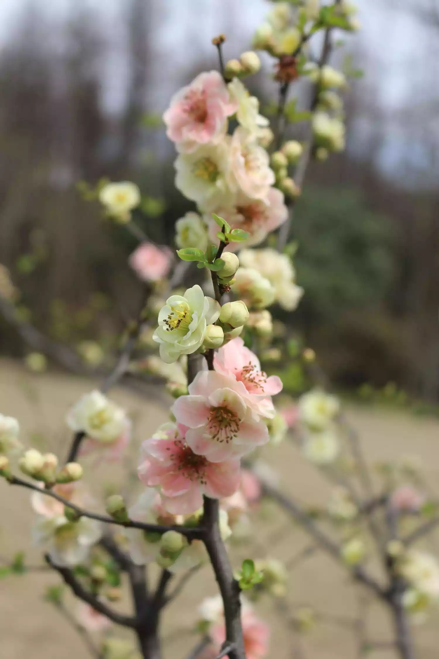 Here, the children even picked up some "thorn balls" (the fruit of the sweetgum tree, used as a medicine, also called "lulutong"). Further ahead, there was a large field of elaeagnus, and around to the rose family, red-leafed plum blossoms with pink and white flowers; the calyx of the wood peach had fused at the base into a small tube, and the petals were pressed against each other like tiles; the cherry trees had passed their blooming period, and were now showing tender red leaves. Further down, the ground was covered with white magnolias, their petals soft and thick, and they were in full bloom. Then came the pointed-leafed magnolias and broad-leaved magnolias, with small yellow flowers and green to purple fruits...