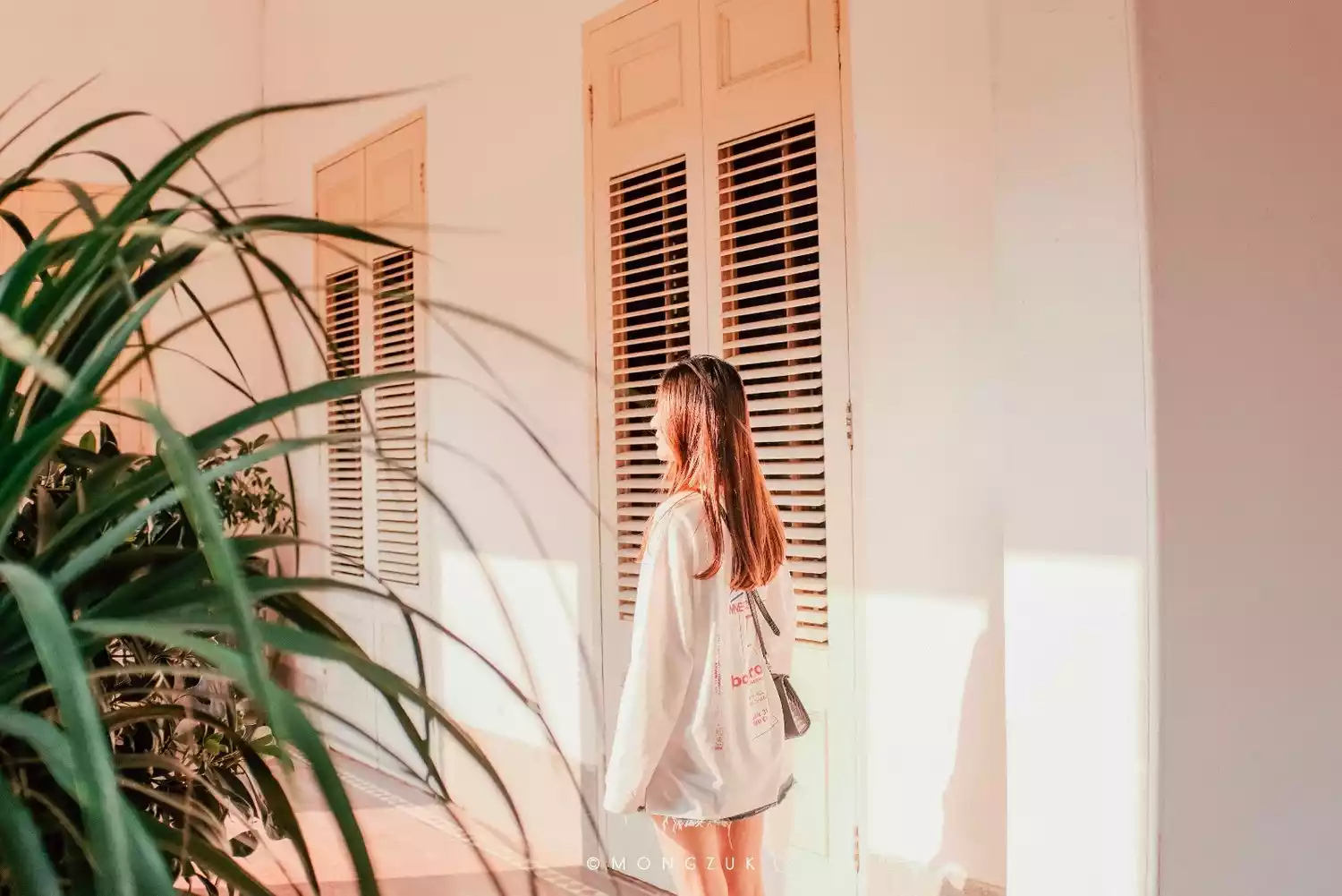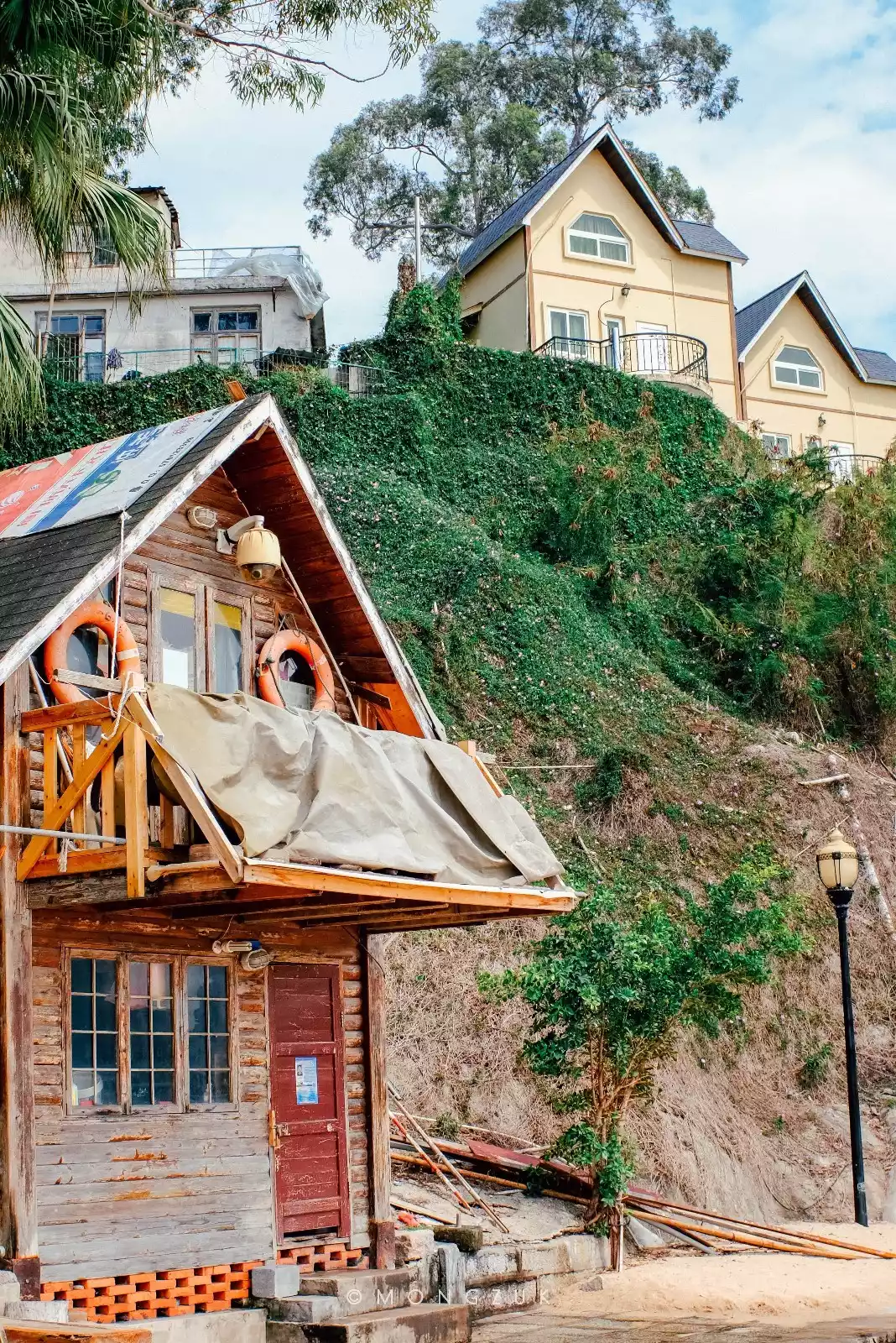 The best time to take photos here is at dusk. The warm orange light sneaks in through the gaps in the porch, and there is a large lawn at the door, which is really comfortable.