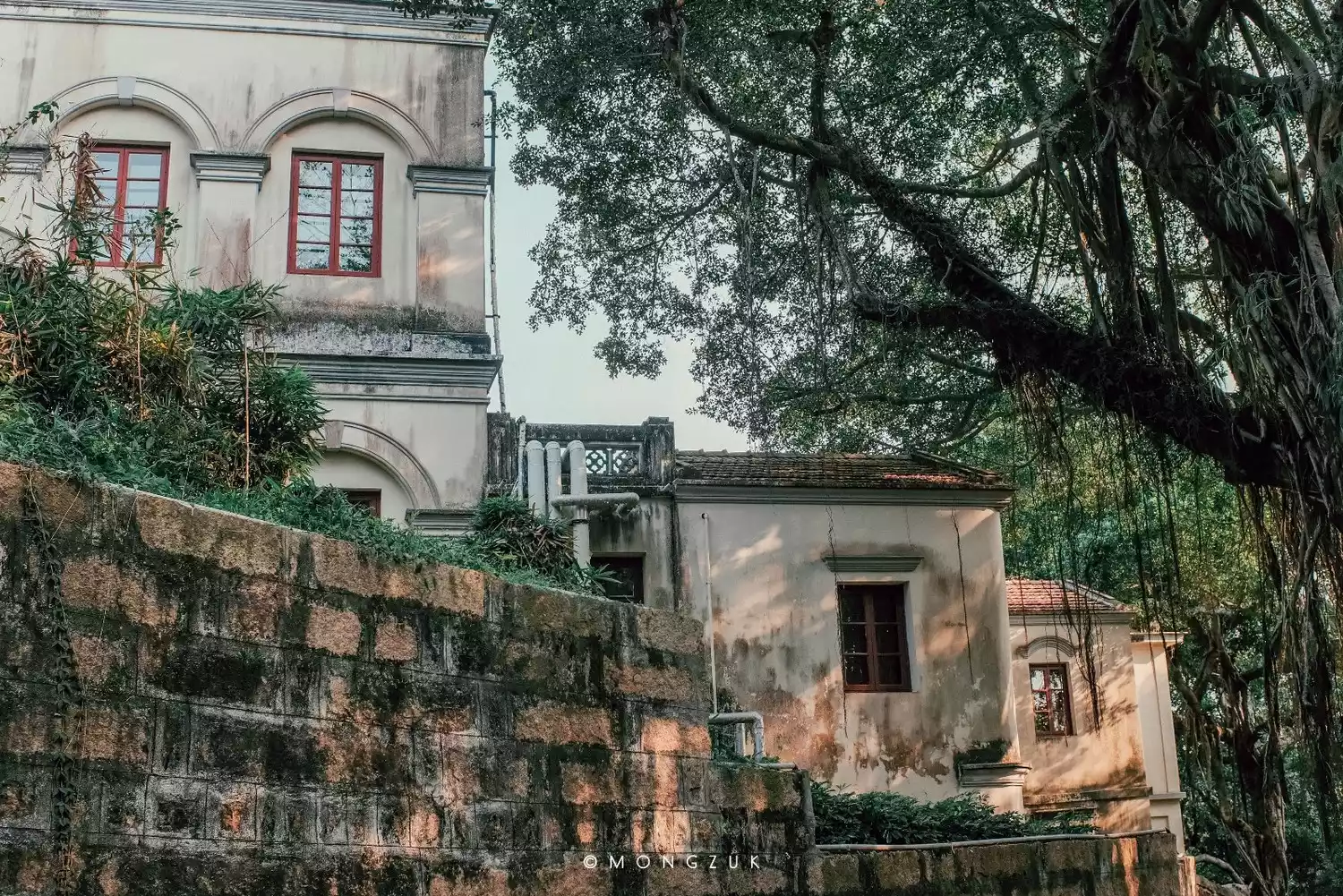 There is a long and narrow staircase on the left side facing the Guancai Tower. You can see the villa by walking down the stairs.