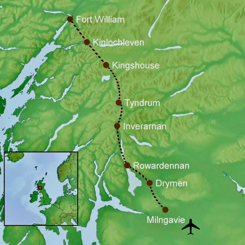 As Scotland's first officially approved long-distance hiking trail, the West Highland Path stretches from Milgate in Glasgow to Fort William. This route connects directly to Scotland's most beautiful scenery, from the Scottish countryside to national parks, from quiet lochside paths to steep mountain trails. The West Highland Path showcases the beauty of Scotland in its own unique way.