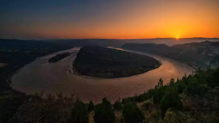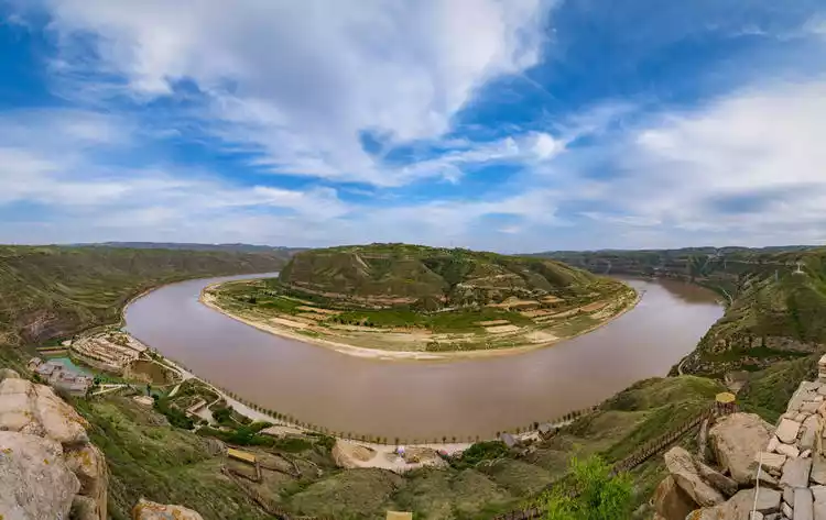 The most beautiful bend on the Yellow River. The bend of the Yellow River at the junction of Shaanxi and Shanxi looks like a natural Tai Chi diagram. It is a major natural landscape on the Qin-Jin Gorge of the ancient Yellow River Road. It is also the most beautiful and spectacular scenic spot in Yonghe, Shanxi. The bend has an arc of more than 320 degrees, which can be called the first bend of the Yellow River in the world.