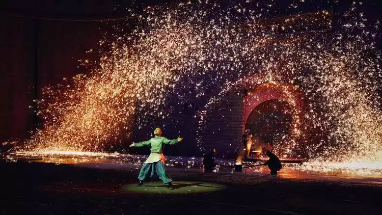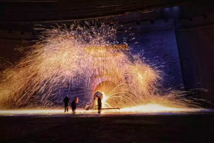 ★Iron flower making is a traditional folk custom in Nuanquan Ancient Town. The scorching hot molten iron bursts into the air, and thousands of iron filings suddenly form colorful sparks due to oxidation. The sparks are gorgeous, unpredictable and dazzling. Don't miss it!