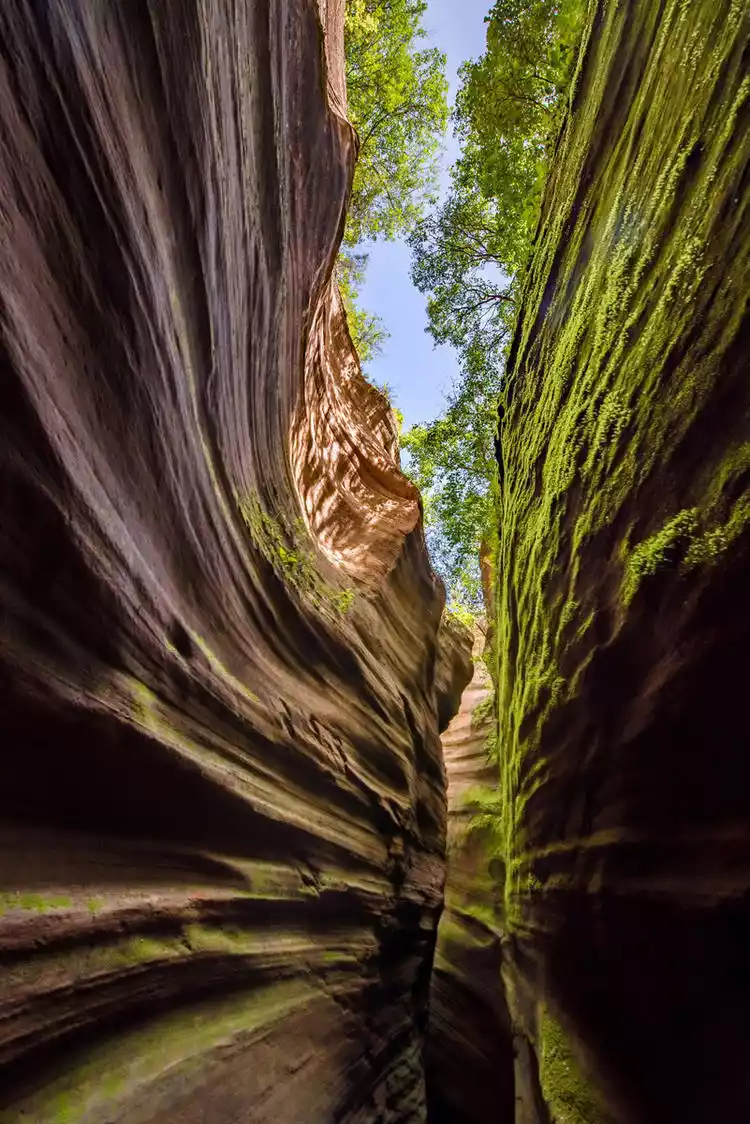 This is the heart of the Yucha Grand Canyon. The approximately 800-meter-high Birch Tree Valley is a photographer's paradise. A stroll through the lush greenery lining the rock faces creates a sense of wonder, reminiscent of the Wizard of Oz. It reveals a wondrous world sculpted over millions of years by wind, water, and time. The dreamlike quality is especially striking when the midday sun streams down, and a wide-angle lens is essential for capturing this profound feeling.