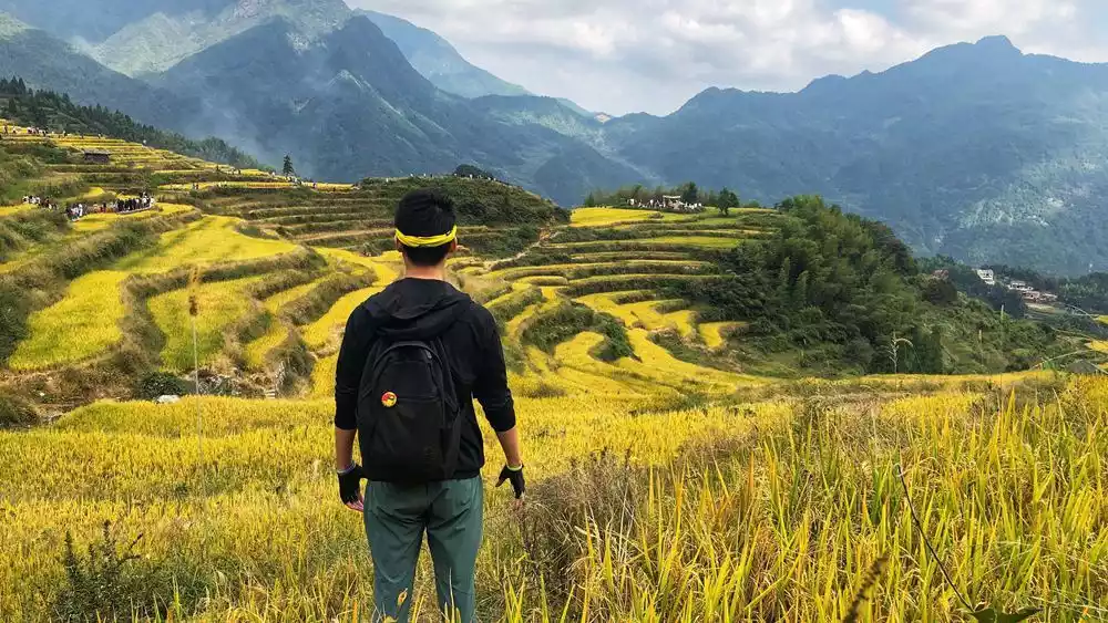 Looking at the rice fields all over the mountains, you can feel the hard work of growing every grain of rice, walk into the country road and disappear into the rice fields.