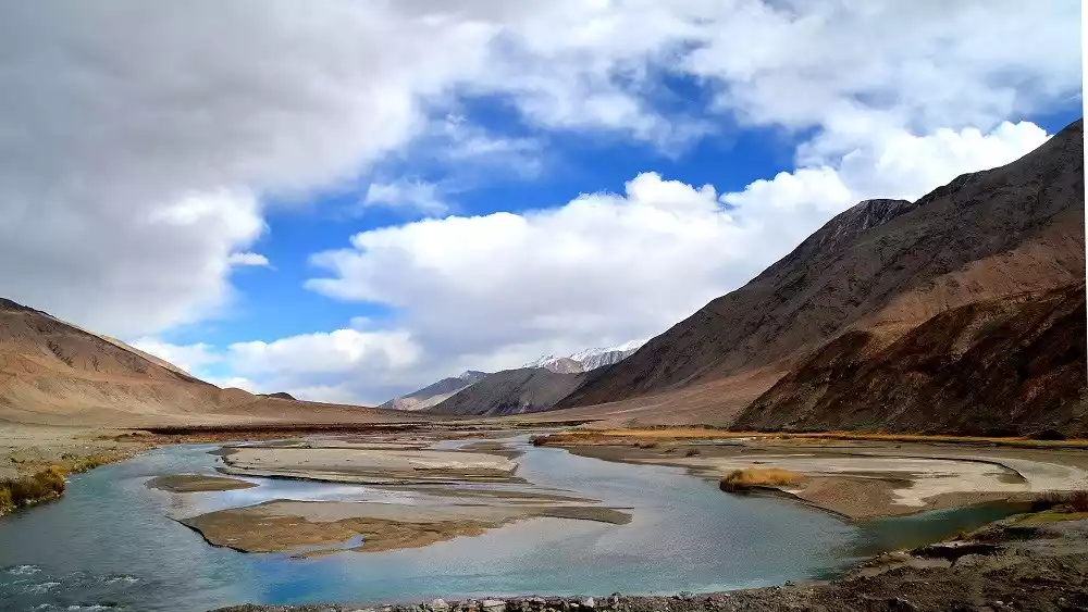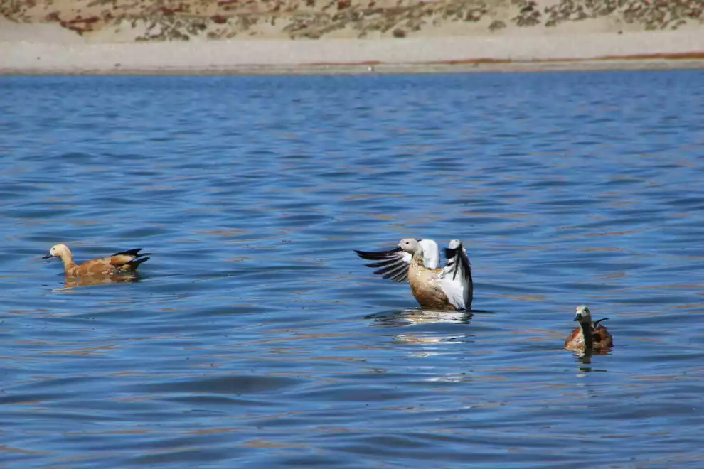 Pangong Lake, known as Como Ngla Hongbo in Tibetan, meaning "long-necked swan," is a lake with a uniquely different salinity between its east and west waters, with the salinity increasing from east to west. The eastern part is freshwater, the central part is brackish, and the western part is saltwater.