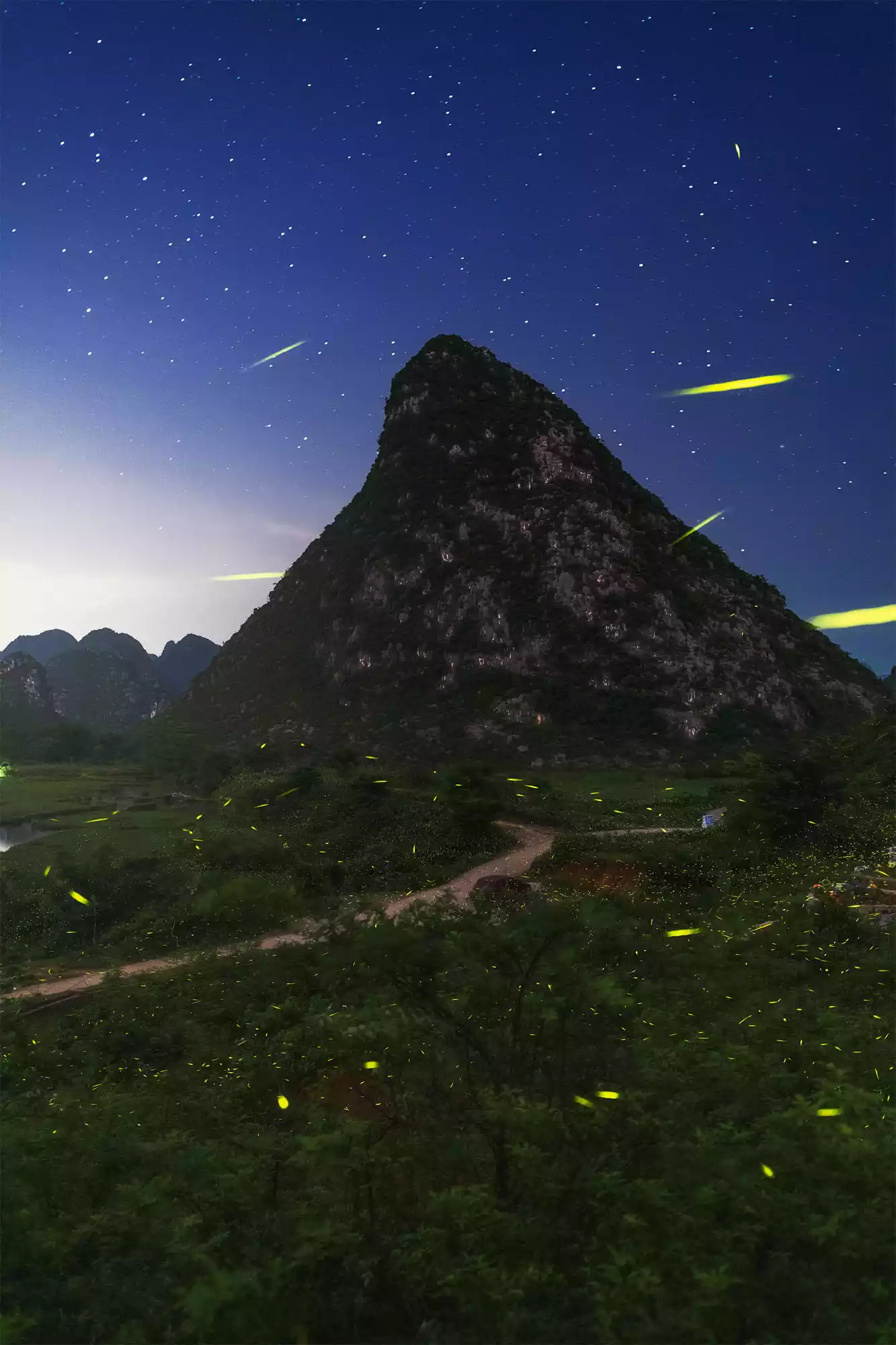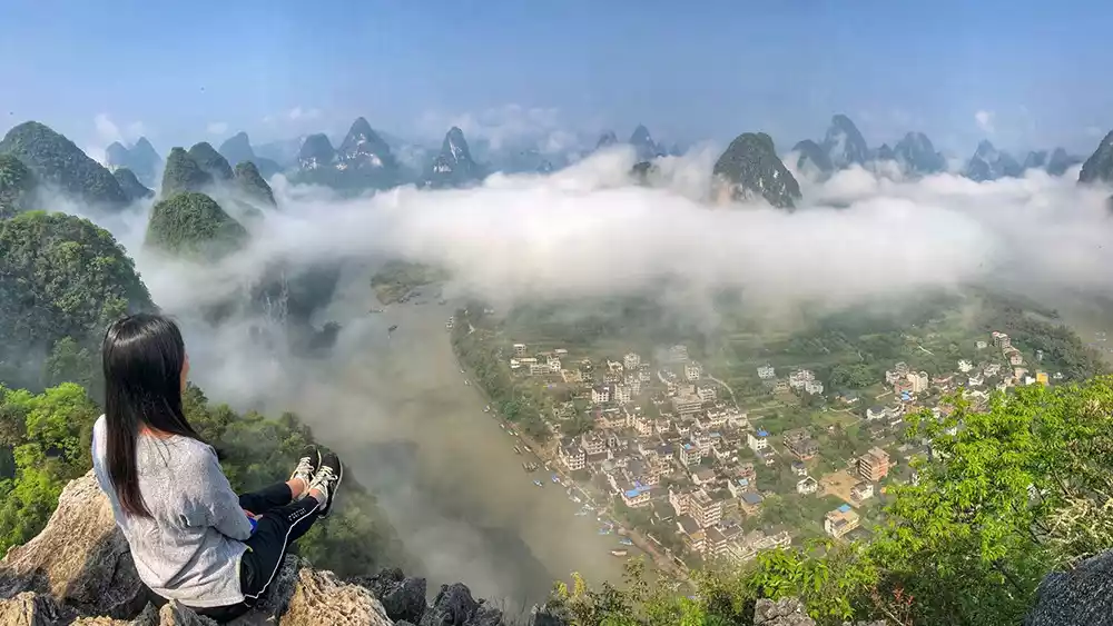 Jinsuo Mountain, located at the entrance of Xianrendong Village, boasts an even better location than Qinglong Cave. The entire mountaintop is paved with steps, and reaching the summit offers unobstructed panoramic views. Enjoy the view of numerous rivers and lakes, winding waterways around the green mountains, reflections on the lake, and the setting sun...