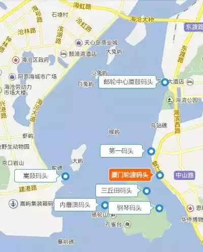 三丘田码头 → 厦门海底世界 → 潘小莲的芒果酸奶 → 赵小姐的店 → 张三疯欧式奶茶铺 → 北仔饼 → 康家龙头海蛎煎 → 龙头鱼丸183 → 老宅215 → babycat私家御饼屋 → 黄胜记 → 百年鼓浪屿 → 褚家园咖啡馆 → 日光岩