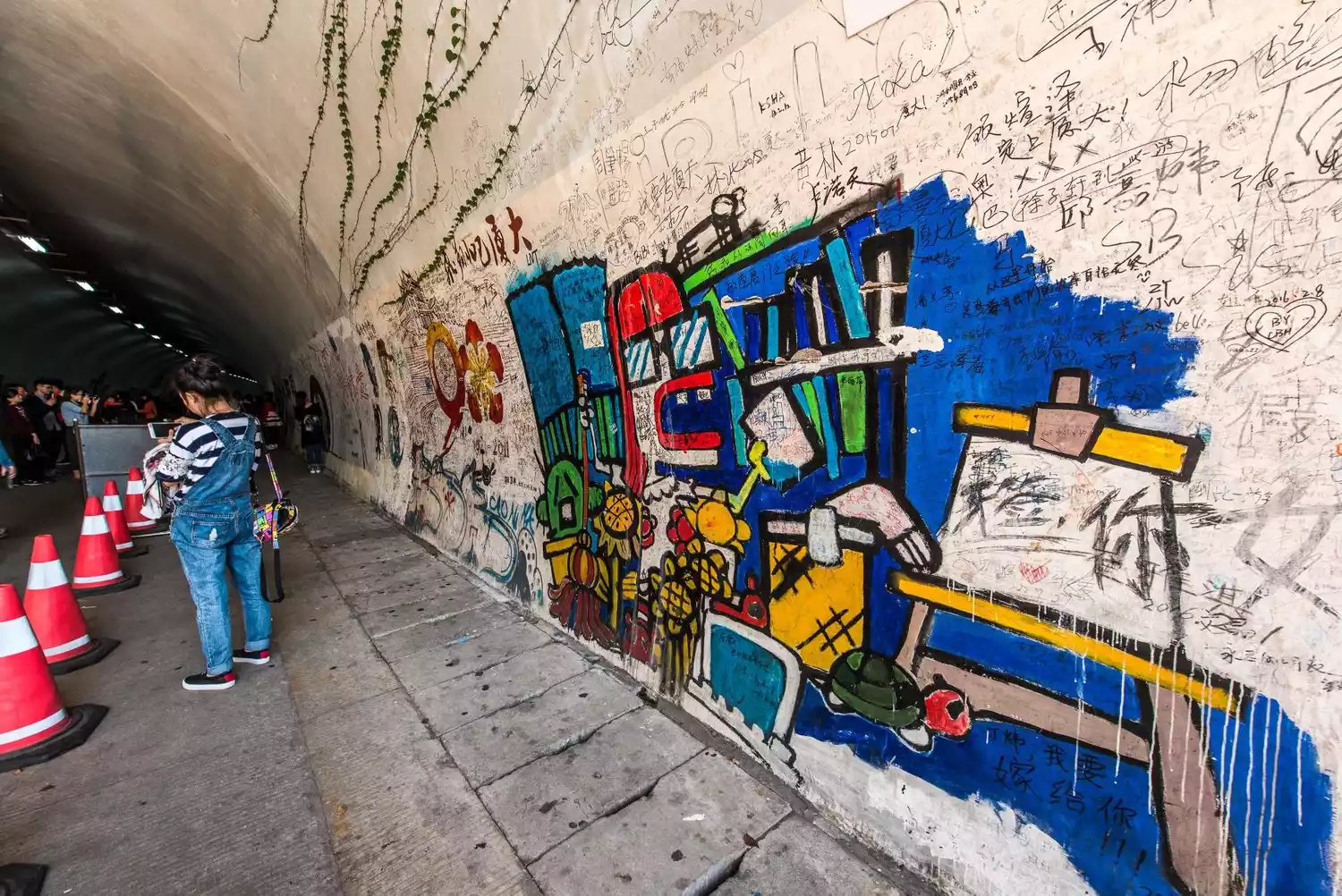 2.芙蓉隧道:厦门学子的杰作,他们在1km的隧道墙面上绘满了各种文字和图画,充满了艺术气息,是很适合凹造型拍照打卡;